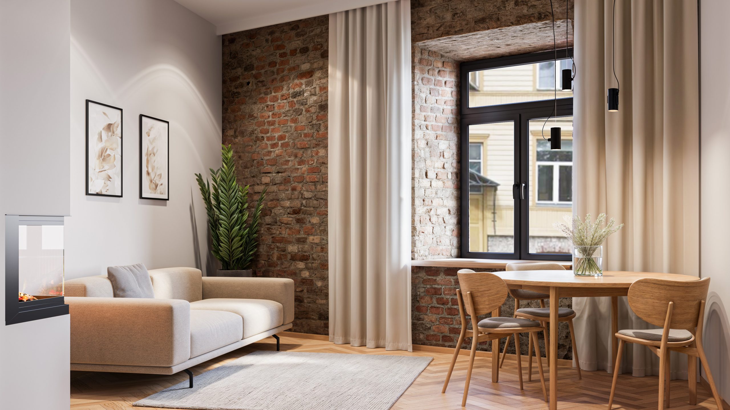 Võimalus säilitada ka autentne telliskivisein, mis annab ruumile soojust, iseloomu ja ajatut arhitektuurset väärikust.